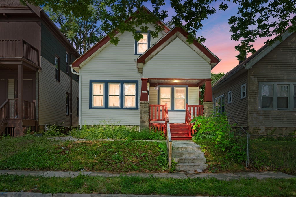 Cozy Bungalow-style home. The main level features hardwood floors throughout the open living and dining areas, providing a warm and inviting atmosphere. The partially finished basement adds extra versatile space, ideal for a home office, playroom or additional bedroom or living area. Upstairs, the home has a spacious primary suite with a full bath. The suite is designed with privacy and comfort in mind and has a lot of opportunity to make your own! Additionally, the home features newer windows, ensuring energy efficiency and year-round comfort. This residence presents an opportunity to create a comfortable and functional living environment tailored to your preferences.