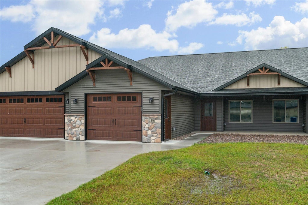 Here's your chance to own a deluxe home in Viola's newest development on York Street. This spacious two bedroom home features a zero-entry architectural design with superior finishes that sets the quality of what you'll own here significantly above the standard. Custom cabinetry with high definition countertops, stainless steel appliances, an En Suite bathroom with a walk-in closet in the primary bedroom, solid core doors and luxury vinyl floors. Granite vanity tops. The attached garage is 25' deep, insulated and provides plenty of space for a vehicle plus additional storage. It's also fully finished and ready for you to organize in style! Premium exterior materials include maintenance free windows and siding, stone veneer on the facade, accent trims and a walkout patio too!